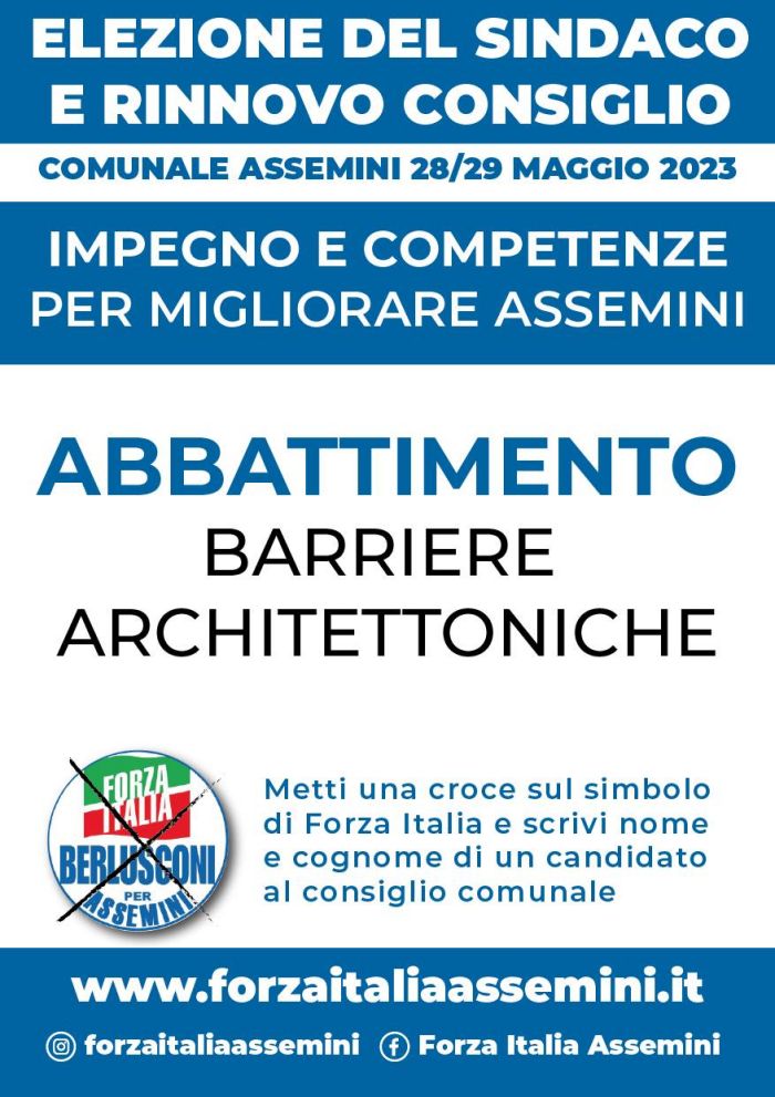 Abbattimento delle barriere architettoniche. Rifacimento del manto stradale e dei marciapiedi. Potenziamento dei servizi sociali. Valorizzazione dello sportello Europa delle imprese.